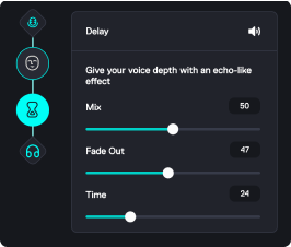 Explore endless possibilities! Create edgy, harsh voices with distortion, make your voice deep and powerful using pitch and EQ, and add reverb for an echo effect that adds space and depth. The best way to understand these effects is to jump in and try them out for yourself!