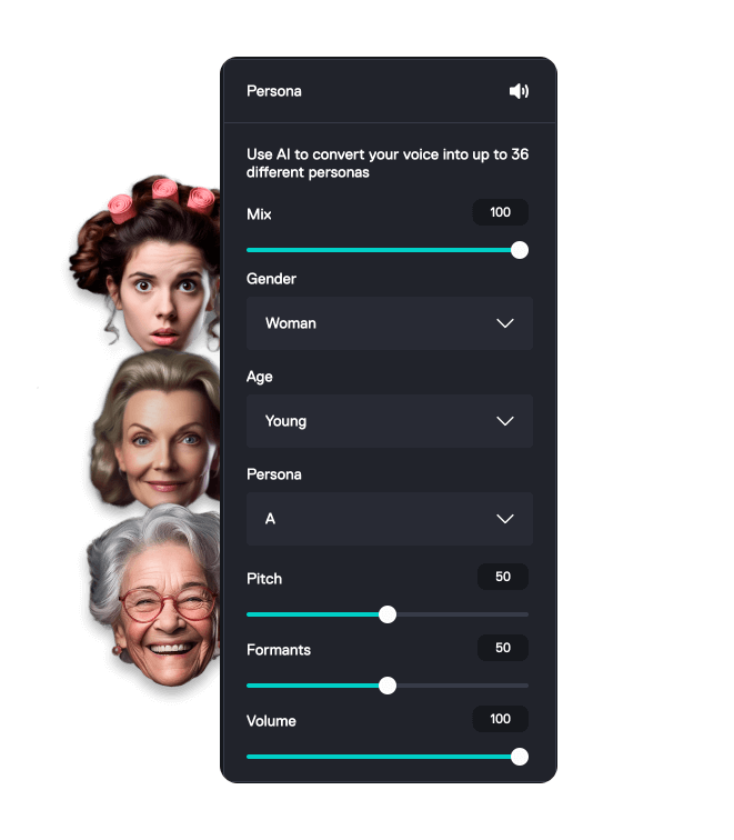 With AI Persona Voice, you can create fun variations of your voice! The AI lets you choose from three ages, three genders, and four tone styles. Mix and match to make a voice that’s still you—but with a twist!